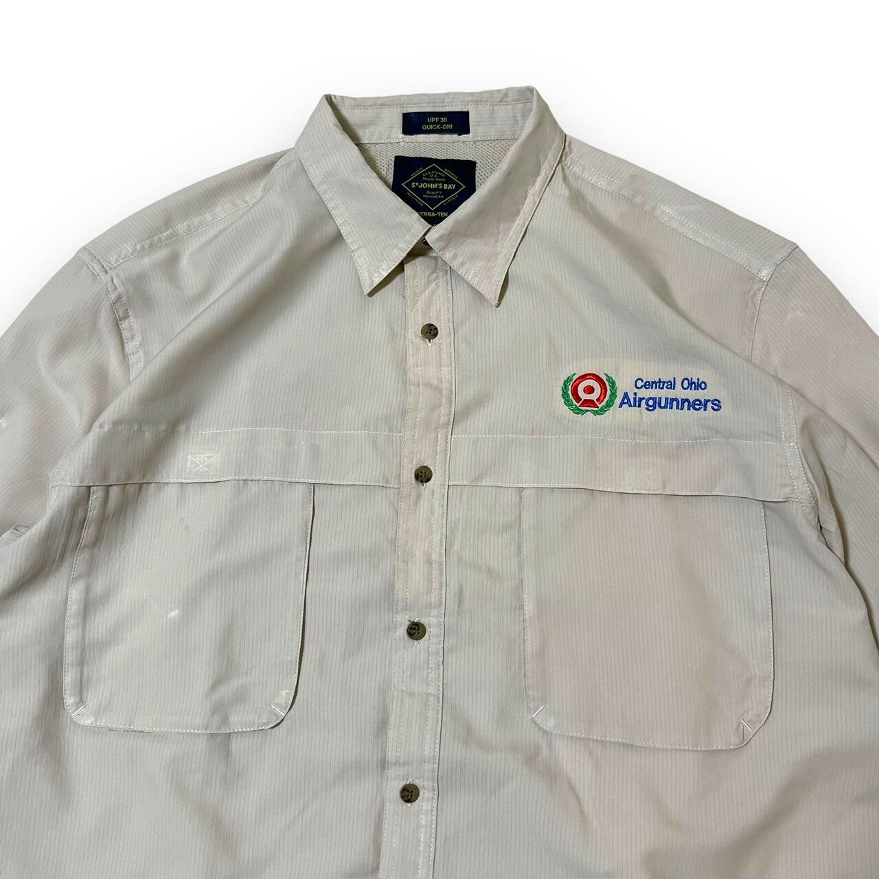 ST.JOHNS BAY embroidery polyester shirt / セントジョンズベイ 刺繍 ビッグポケット ポリエステル シャツ フィッシングシャツ L 古着 | mikki_usedclothing_store
