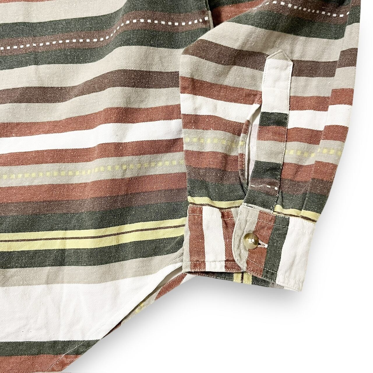old Andrew's Blue mulch border cotton shirt / マルチボーダー デザイン コットンシャツ 古着 アースカラー | mikki_usedclothing_store