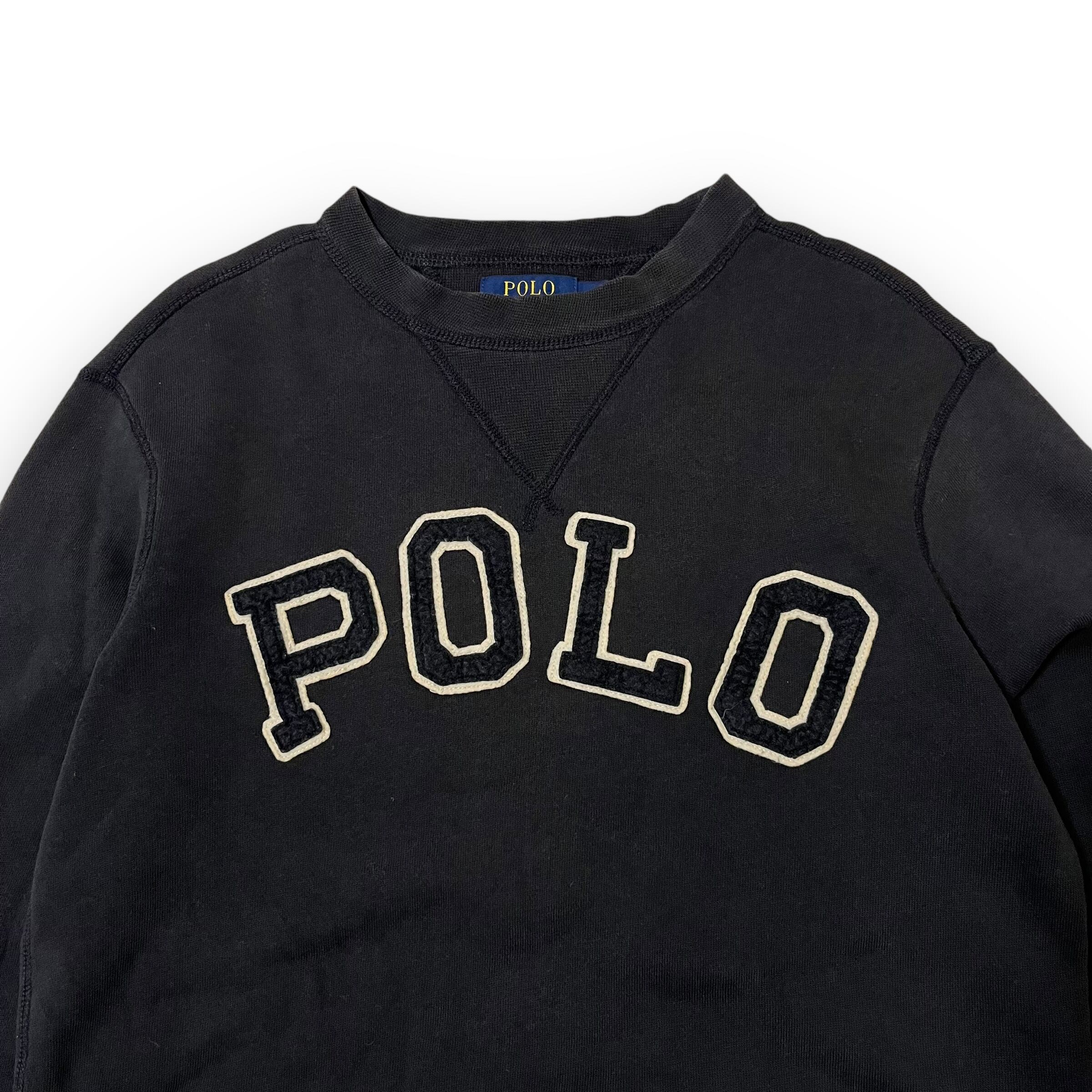 Polo Ralph Lauren Big logo sweat shirt black / ポロ ラルフローレン ビッグロゴ ワッペン ブラック スウェット トレーナー S 古着
