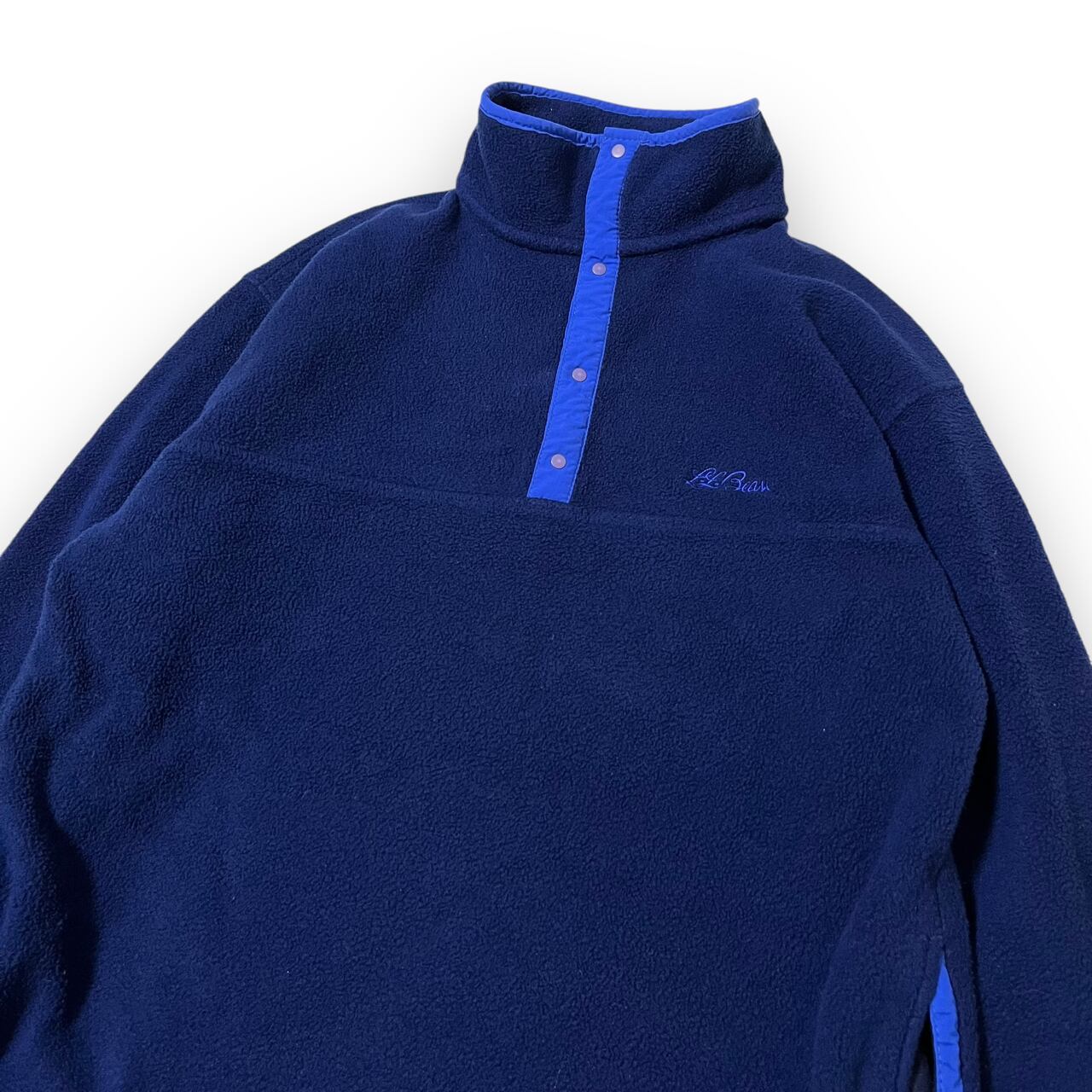90's L.L.bean half snap fleece pullover / オールド エルエルビーン 筆記体 刺繍ロゴ ハーフスナップ フリースジャケット ネイビー 古着 AD071 | mikki_usedclothing_store