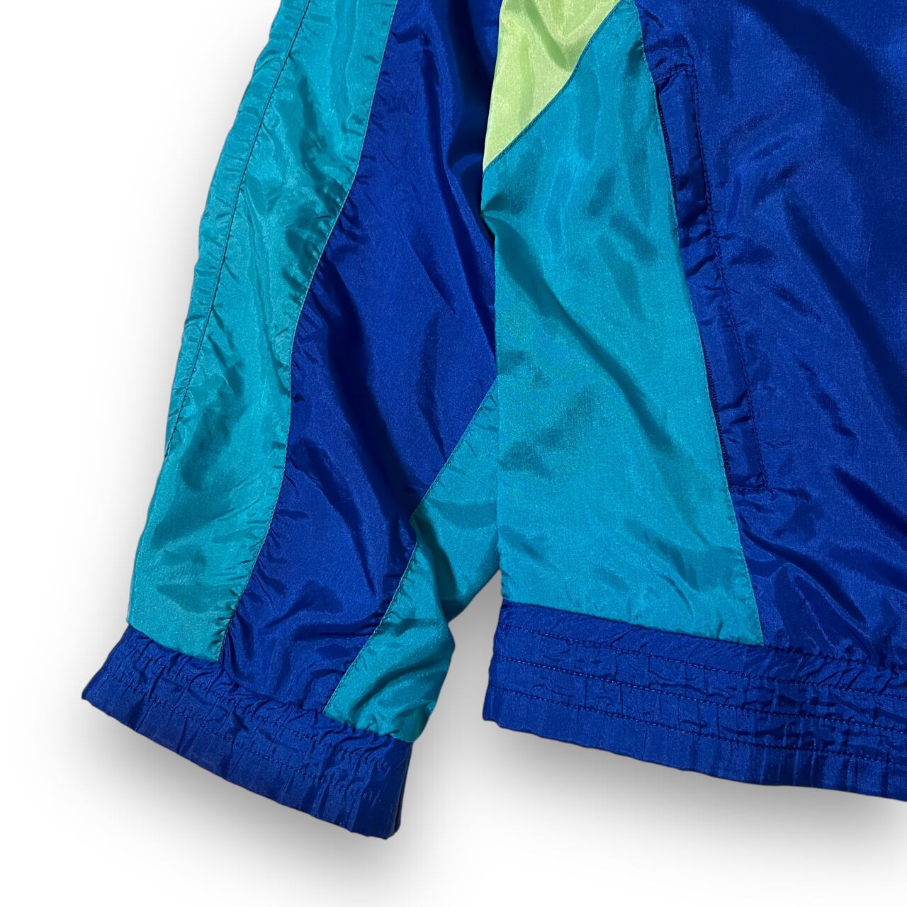 80's~90's adidas design nylon jacket / オールド アディダス デザイン ナイロンジャケット 刺繍ロゴ ブルー 古着 裏地付 AD103 | mikki_usedclothing_store